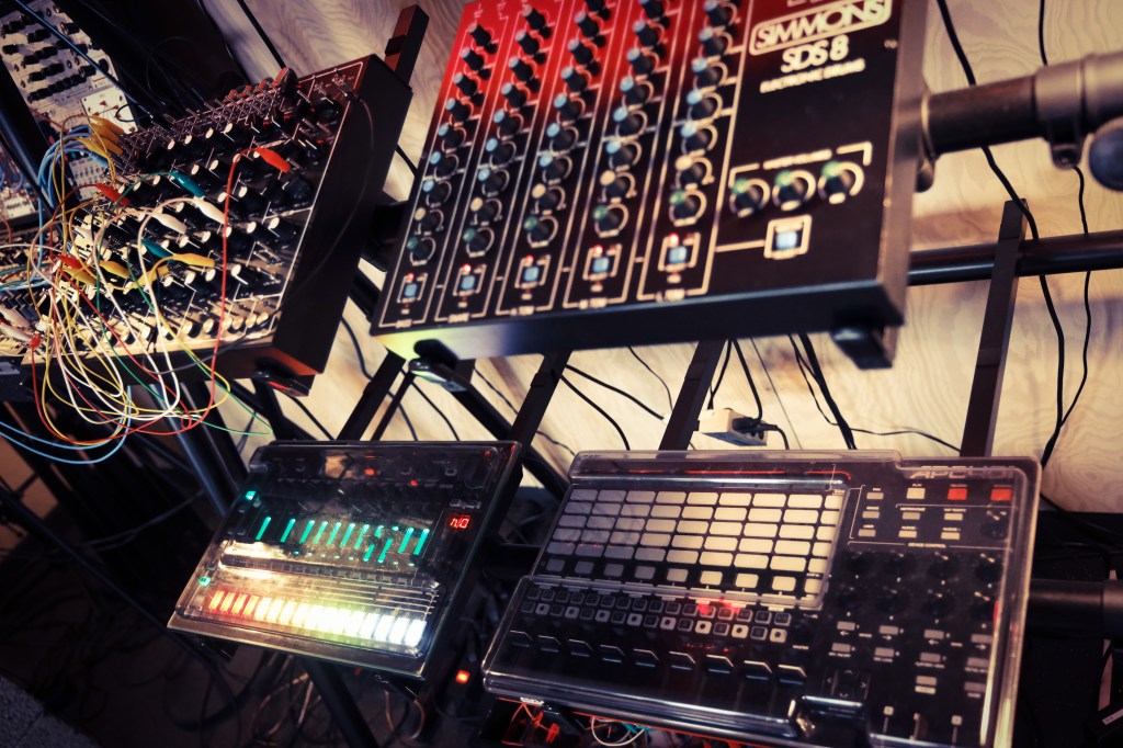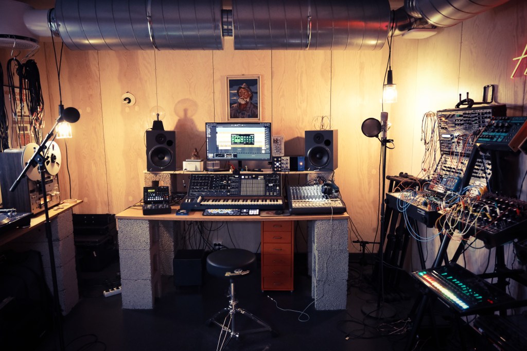 Mainly functioning as a programming and mixing suite, with an extensive list of hardware synths and drum machines (see below), it is also perfectly possible to record vocals and drums by cramming the space even more on a temporary basis.